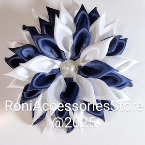 Handmade Pin Corsage Satin Ribbon Corsage: Antique White, Navy Blue, and Black Brooch Formal Events Weddings